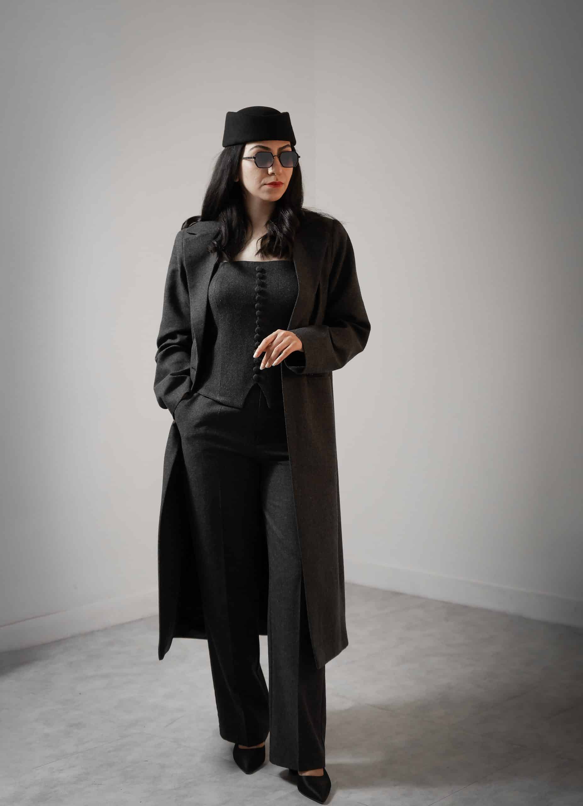 نیم‌تنهٔ لنا با پارچه کشمیر ایتالیایی تولید شده است؛ پارچه‌ای سبک، نرم و خوش‌ لمس. طراحی این نیم‌تنه بر پایه سادگی و ظرافت انجام شده است. فرم آن کوتاه و متعادل است. روی بدن سبک می‌نشیند و حس راحتی ایجاد می‌کند. این تکه برای استایل‌های روزمره، نیمه‌رسمی و حتی مهمانی‌های کم‌جزئیات مناسب است.