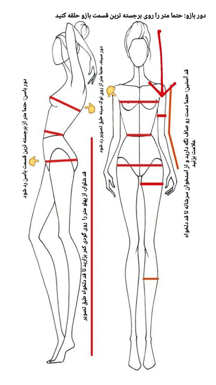سایزدور سینهدور کمردور باسن قد آستیندور بازوقد